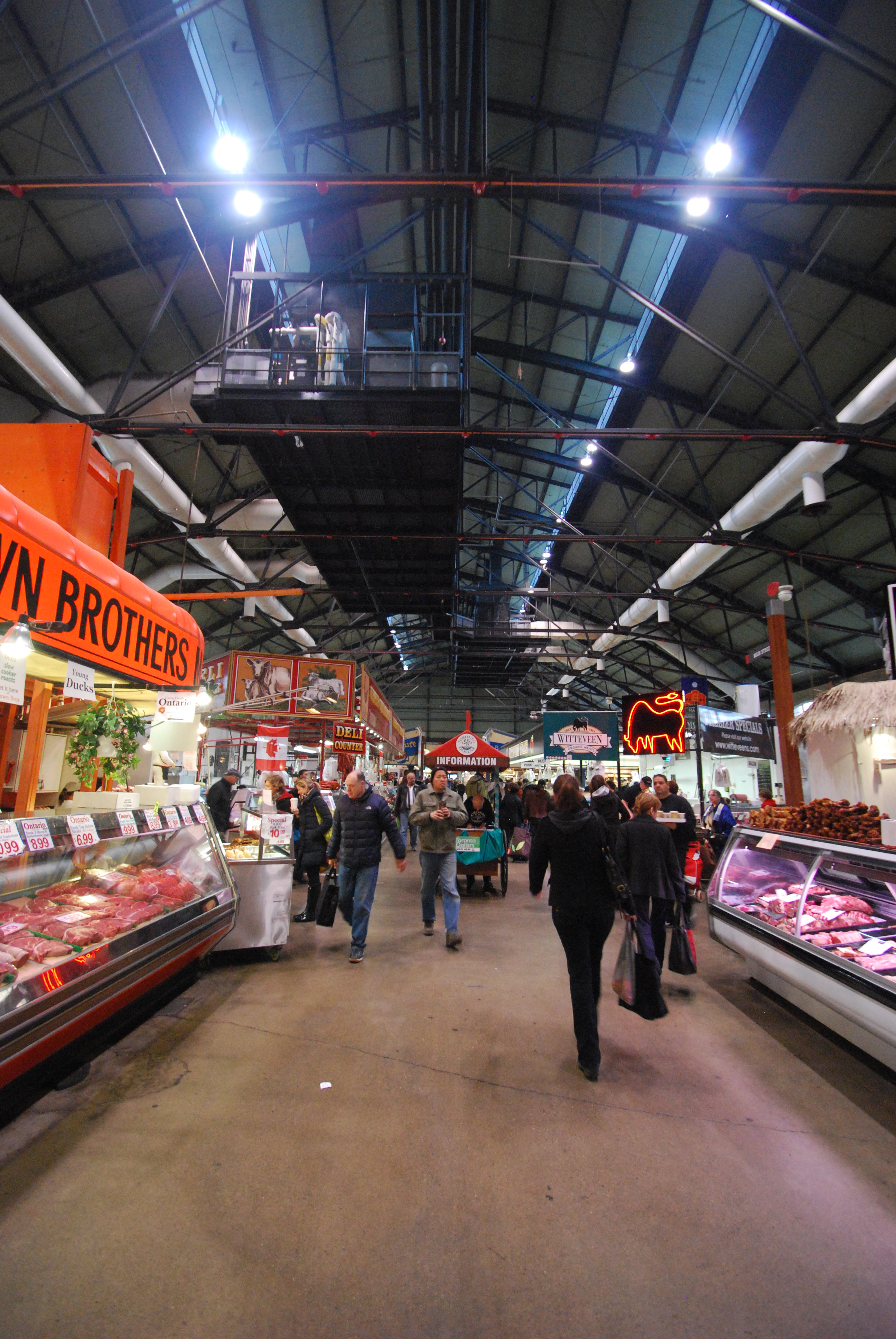 I shop at a supermarket, but have rarely been to a truly Super Market.  In the heart of downtown Toronto is the Saint Lawrence Market.  The market, founded in 1803, is the easily the size of any big box store and is filled with hundreds of vendors.  The first thing you notice when you walk into the large brick building is lots of people pulling their grocery carts behind them, each overflowing with fresh produce and fresh bread. Saint Lawrence is a locals’ market.  The population of downtown Toronto hasn’t abandoned their individual market vendors for the allure of national grocery store chains (yet) and after a quick walk around you’ll see why.   The soaring ceiling gives even the most claustrophobic among us a since of space while walking along the crowded market floor.