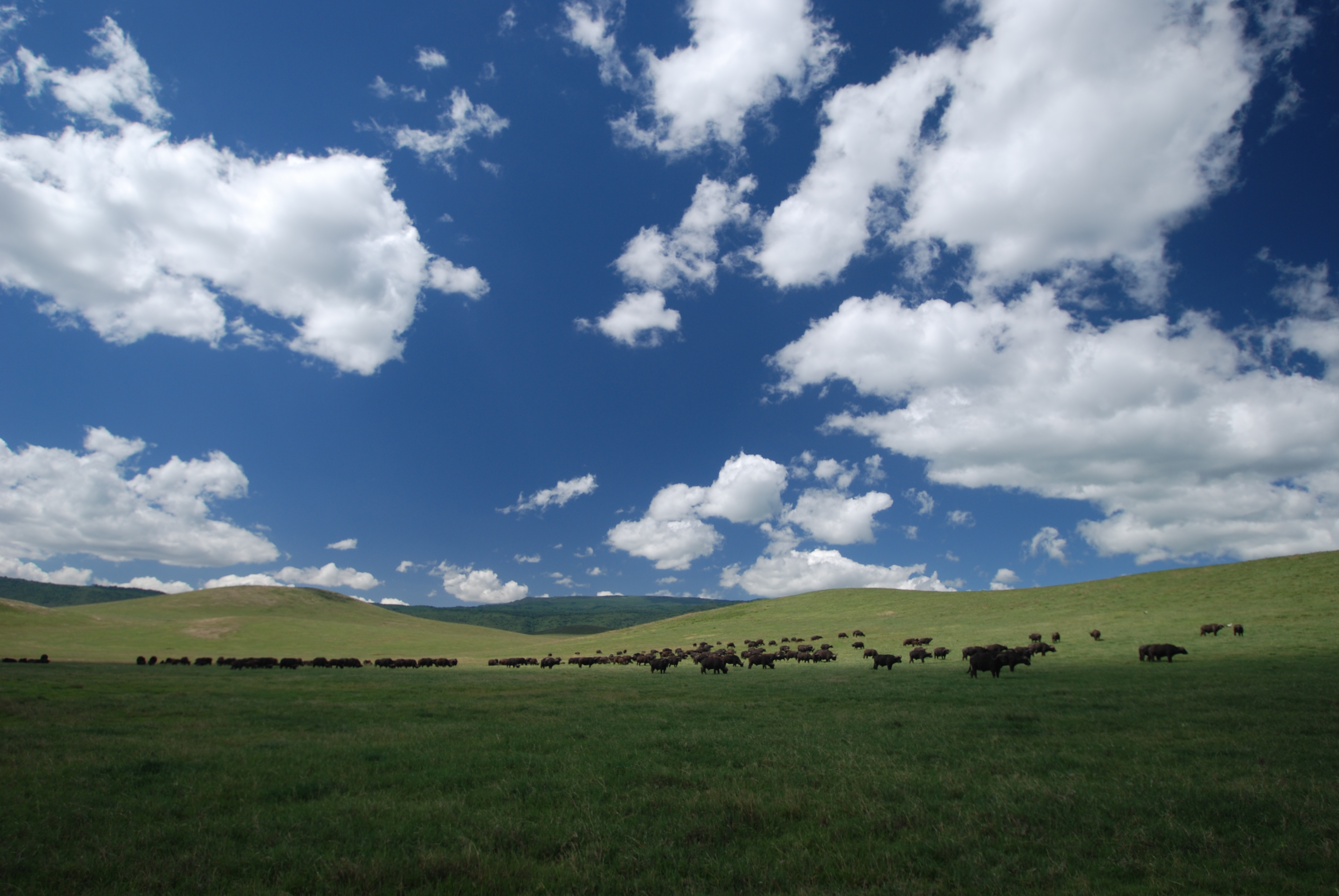 African buffalo welcome us to the Ngorongoro Crater.