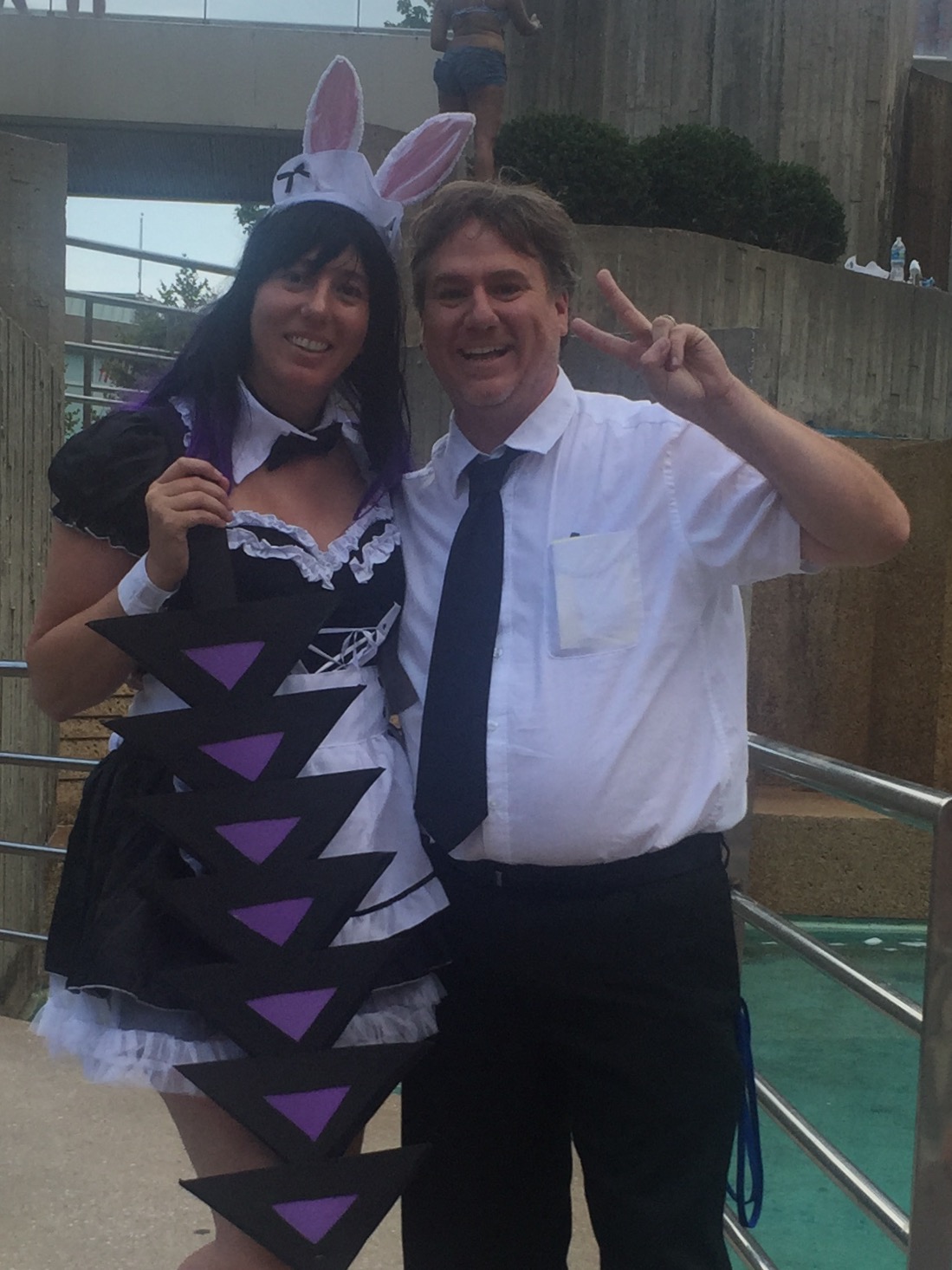 My sister Andrea and I got to experience the amazingness that is Otakon in Baltimore last weekend. Otakon is one of the largest Japanese anime, manga and culture conventions on the east coast. 30,000 fans crowd into the Baltimore Convention Center in costumes ranging from Love Live! (a show about school girl pop stars) to Voltron (a show about a large robot defending the planet), making it quite the spectacle. We (of course) had to go in costume too. My sister went as a teacher who dresses like a maid and wears bunny ears, but constantly tries to kill her students at a magic school. I dressed as one of her students.