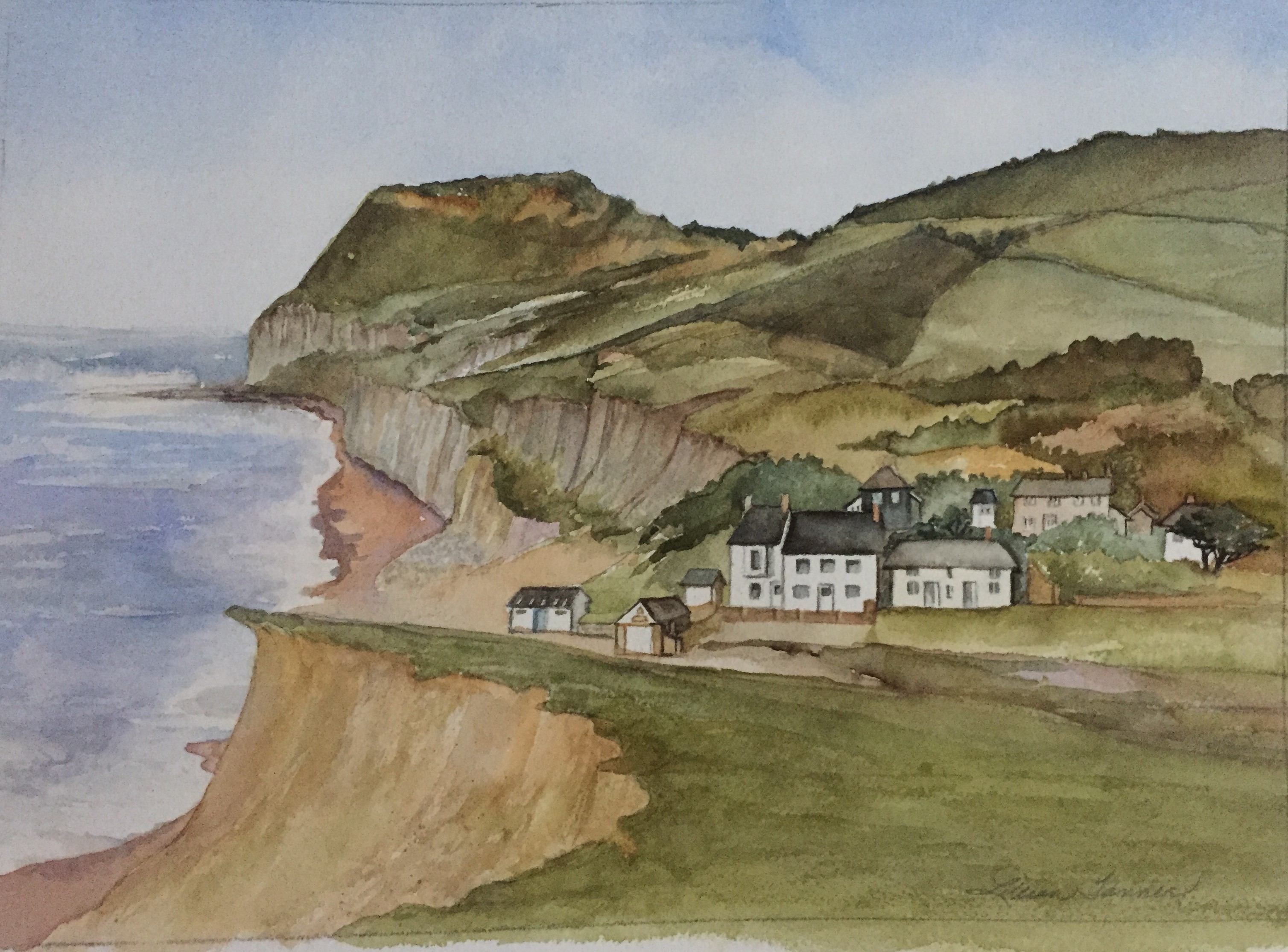 The watercolor below is our take on that idea. Amanda’s Aunt Lillian is a very talented artist, so we commissioned her to paint this picture based on a photo taken on our trip to Seatown, England earlier this year.