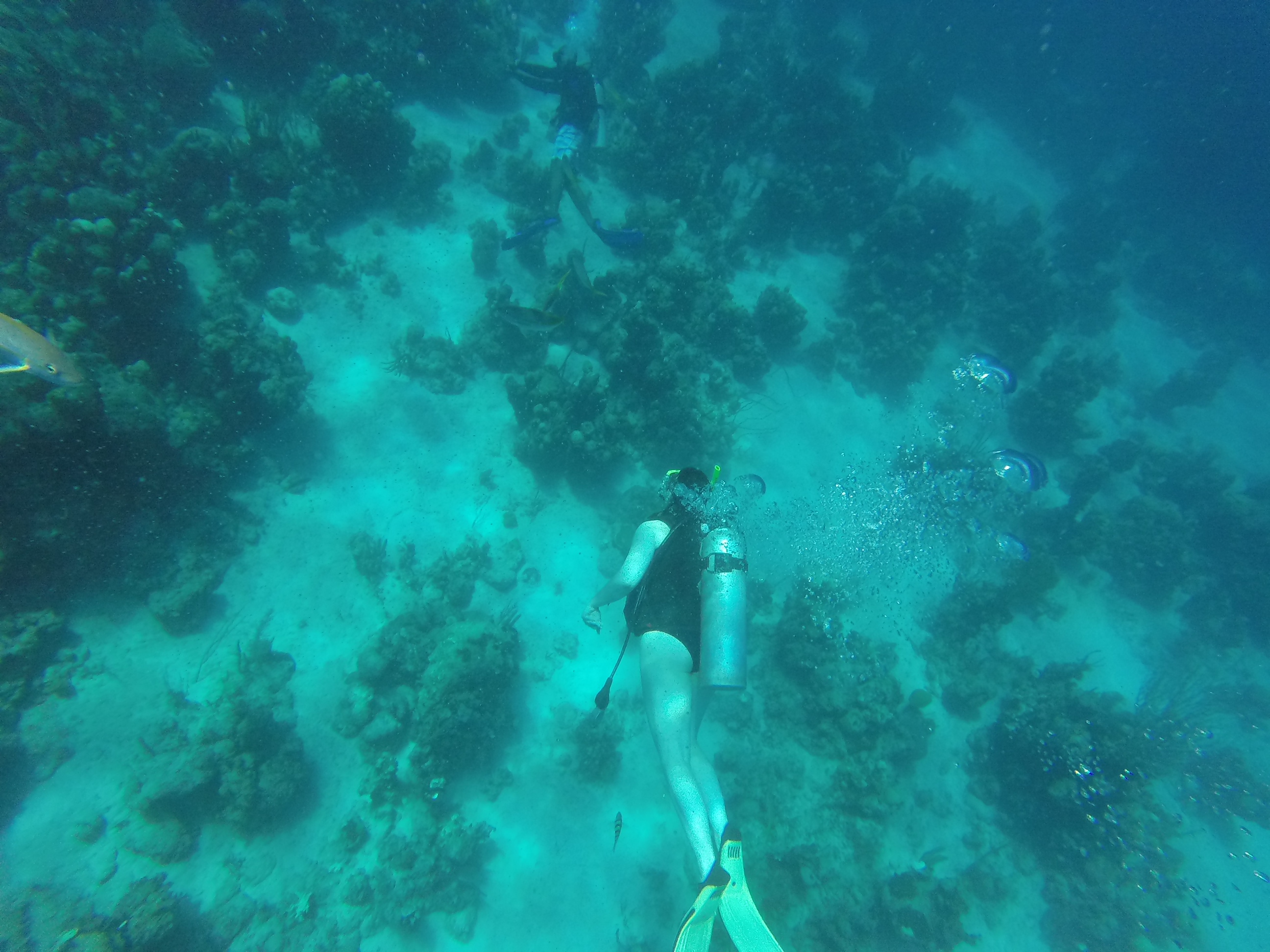 After we descended, regulating the pressure in our ears every couple of feet, we showed our instructor we could perform a couple of key safety-related moves. We let a little bit of water into our masks and cleared it, and tossed our regulators over our shoulders (yeah, that was unnerving), and blowing little bubbles as we brought them back in front of us, getting them back into our mouths and purging the saltwater.