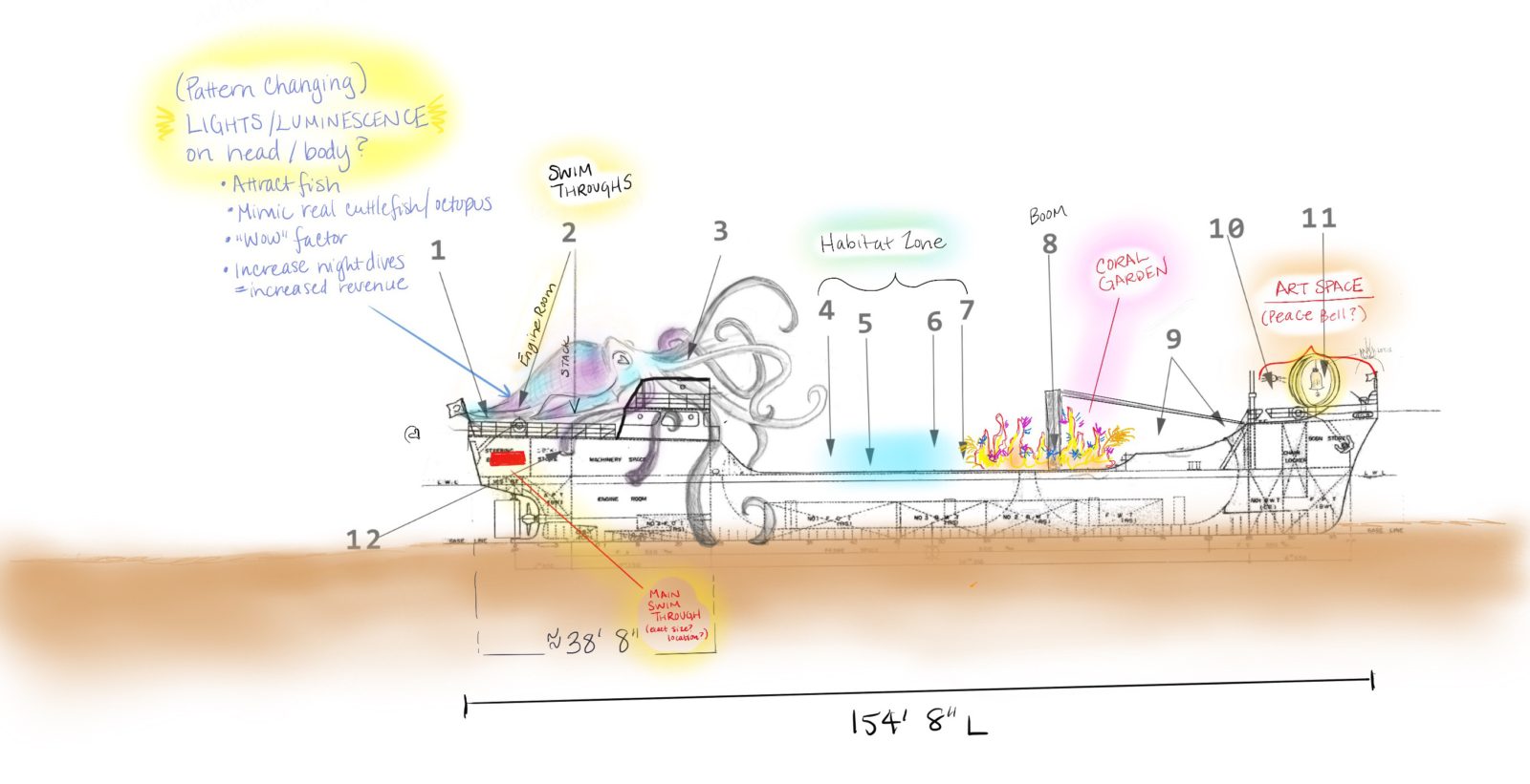 But the ship that didn’t sink during the attack on Pearl Harbor needed a more heroic end than just having a few holes drilled in its haul and flooded with water. A ship with such a storied past could only be brought down to the deep by a beast of mythical origin, the fabled octopus-like Kraken said to drag sailors, ships and virgin sacrifices into the deep.