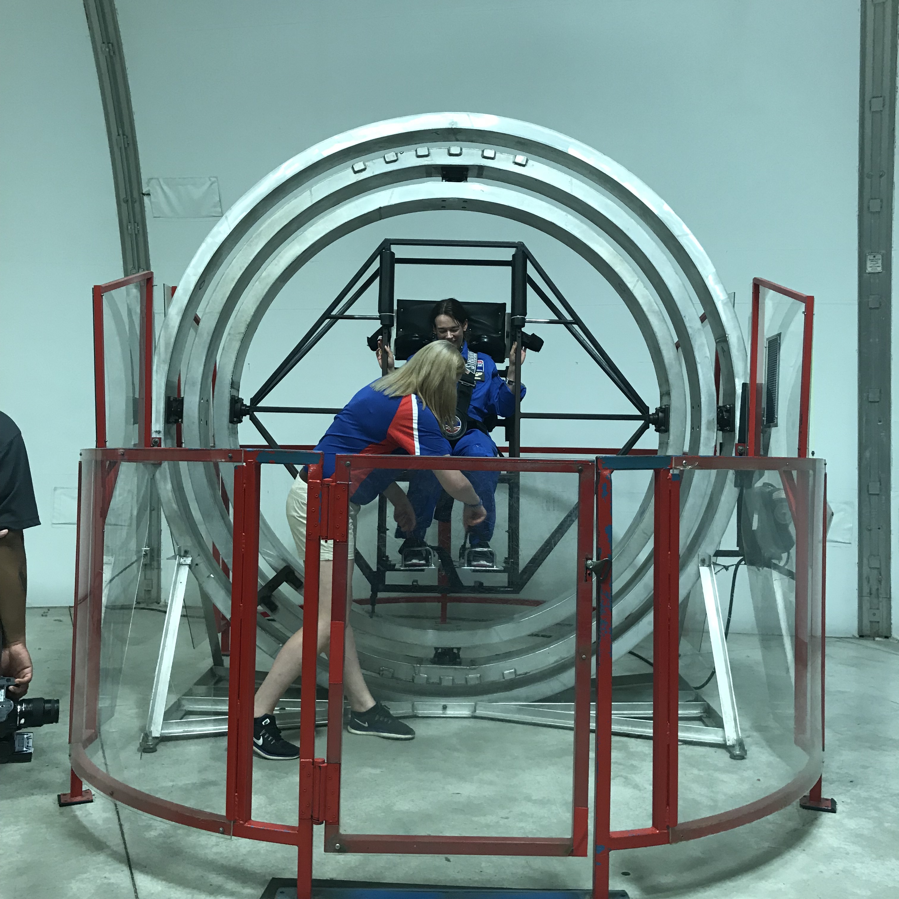 Getting strapped into the Multi-Axis Trainer