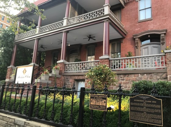In 1987 the Morrison Clark Inn opened and included an addition the north side of the Morrison house that wrapped around the rear of the site, creating a courtyard behind the Clark House. The five-story building opened with 42 rooms, replacing a 19th-century stable. William Adair, the man who oversaw the restoration, was also in charge of the great restoration of White House between 1949 and 1952. He made sure that preserving the historic exterior and many of the interior details of the building, including four pier mirrors and Italian Carrera marble fireplaces, were a priority.