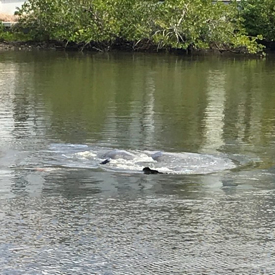 We were told when we moved in that the canal that runs along the border of our apartment complex occasionally has manatees swimming and feeding on the bottom grass. I was starting to doubt that considering the canal gets very low at low tide. I was pleasantly surprised to stumble across some on my lunchtime walk last week. The usually docile creatures were diving and surfacing and diving and surfacing, the most active I’ve ever seen a manatee. I was having trouble counting them but believe there could have been anywhere between 5 and 7. The only problem is that the ability to get a good picture of an aquatic creature with your phone while standing 100 feet away isn’t easy. The weather and wildlife are one of the key reason that we are enjoying the Florida life. The chance to just sit down for a moment and admire nature in the middle of the afternoon while the crazy world goes by is a saving grace in this very weird time.