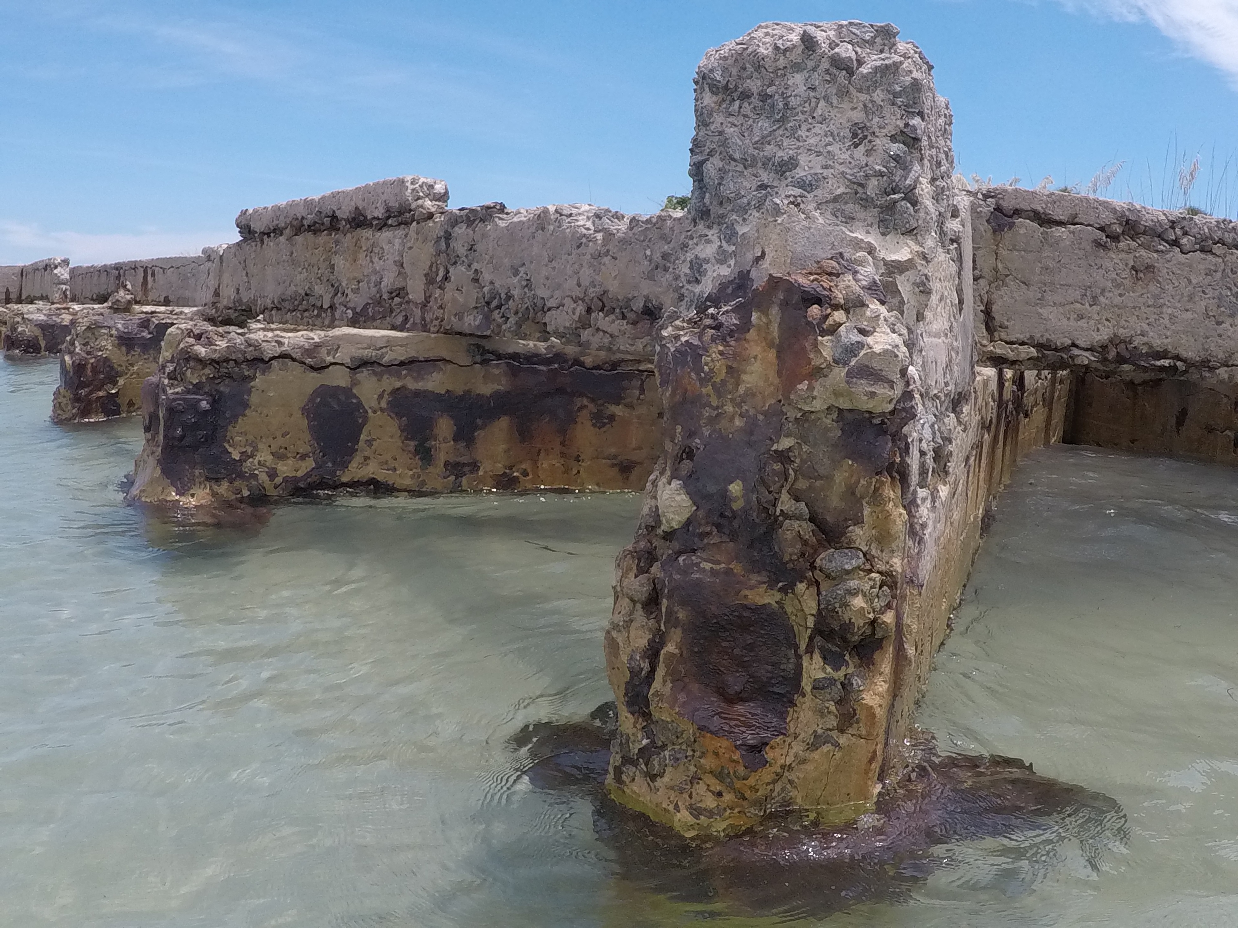 A old concrete dock that was deteriorating at the Fort DeSoto National Park